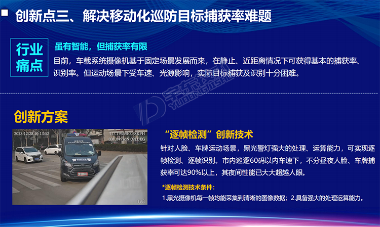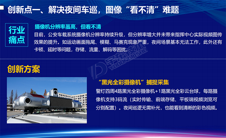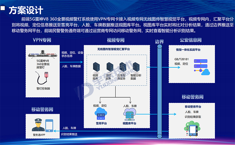 YD-CZ3600-NS型5G雷神V8 360全景視頻警燈系統(tǒng)是針對警用執(zhí)法、刑偵和應(yīng)急指揮開發(fā)的智能警用裝備。產(chǎn)品可部署在車輛等移動載體上,能夠?qū)囕v周邊人員特征(面部、體型、動作)、車輛特征(車牌、車型、顏色)以及移動終端(手機(jī)、PAD等)的關(guān)鍵信息進(jìn)行采集。通過智能分析、比對技術(shù),對人員(性別、年齡、人種)、車輛(車牌號、車牌顏色、車型)信息進(jìn)行分析、甄別,實現(xiàn)對重點監(jiān)管目標(biāo)的提前預(yù)警,同時還可以通過5G/4G等網(wǎng)絡(luò)接入公安應(yīng)急指揮調(diào)度平臺,實現(xiàn)前端警力的調(diào)度、指揮以及對突發(fā)事件的應(yīng)急處置。產(chǎn)品可應(yīng)用于警用大數(shù)據(jù)采集、黑名單布控、人員違法抓拍、武裝押運監(jiān)管等場景。
