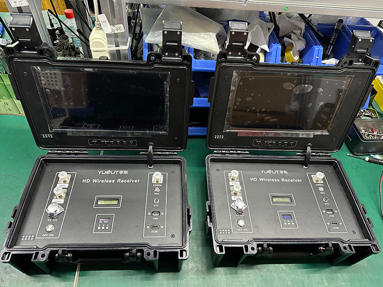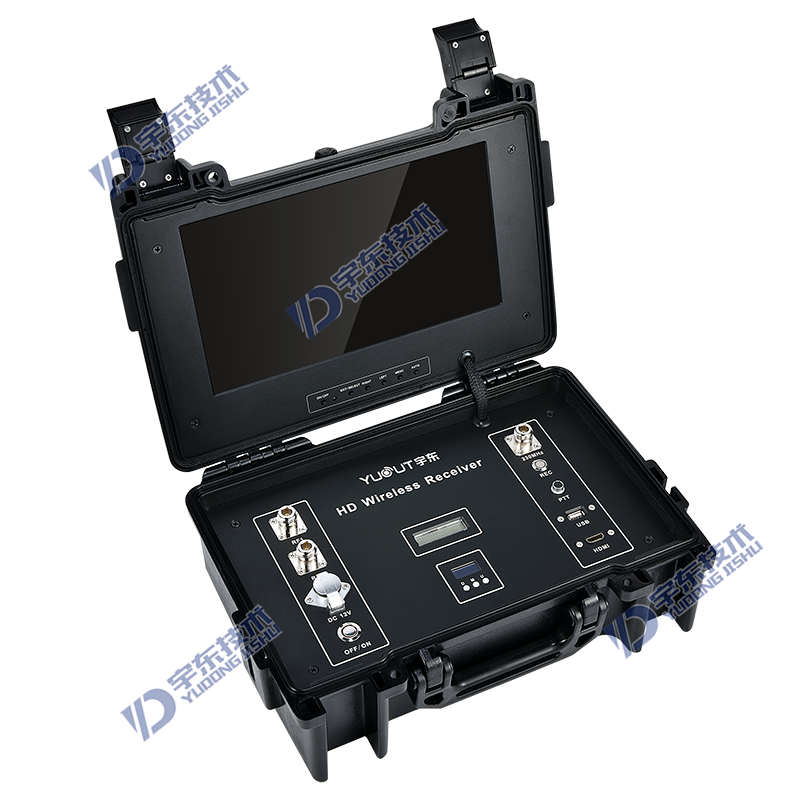 11、接收機為便攜式手提箱類型,支持插USB錄像,自帶顯示屏,可接收并顯示發射機視頻